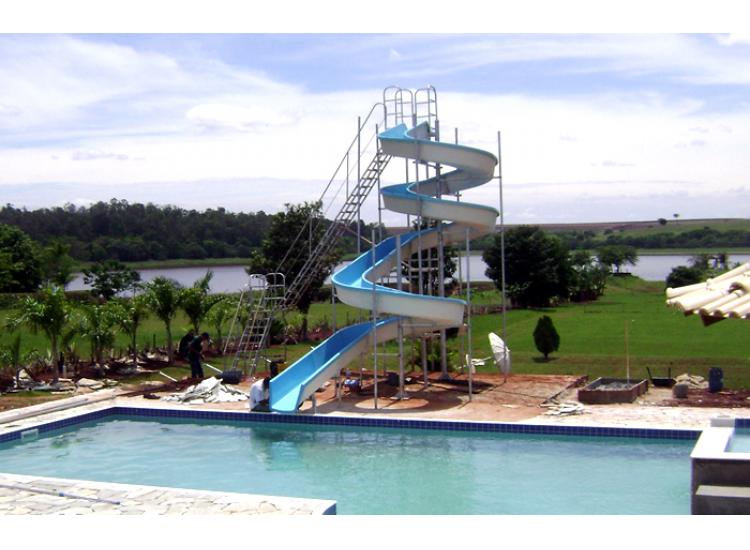 O espaço para instalação dos tobogãs GM Fibras variam de acordo com o tamanho escolhido, sendo necessária a construção de calçada estruturada para chumbagem da estrutura metálica.