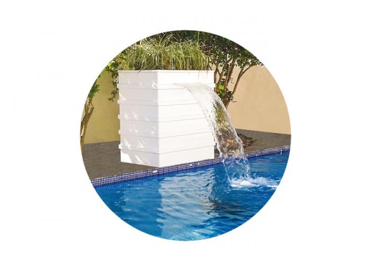 Opcional 3 em 1 que protege seu motor da umidade porque possui melhor ventilação, mantém o entorno da sua piscina mais bonito e garante muito mais diversão para toda família com sua cascata integrada