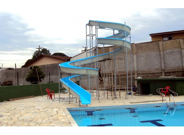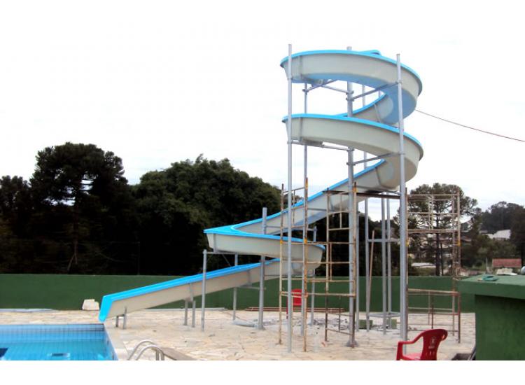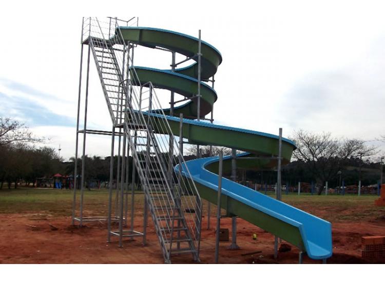O espaço para instalação dos tobogãs GM Fibras variam de acordo com o tamanho escolhido, sendo necessária a construção de calçada estruturada para chumbagem da estrutura metálica.